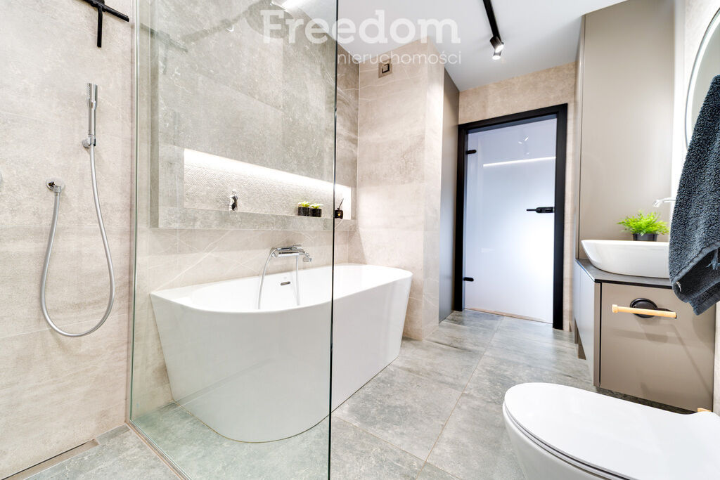 Dwie eleganckie łazienki, garaż w bryle budynku, duży podjazd na